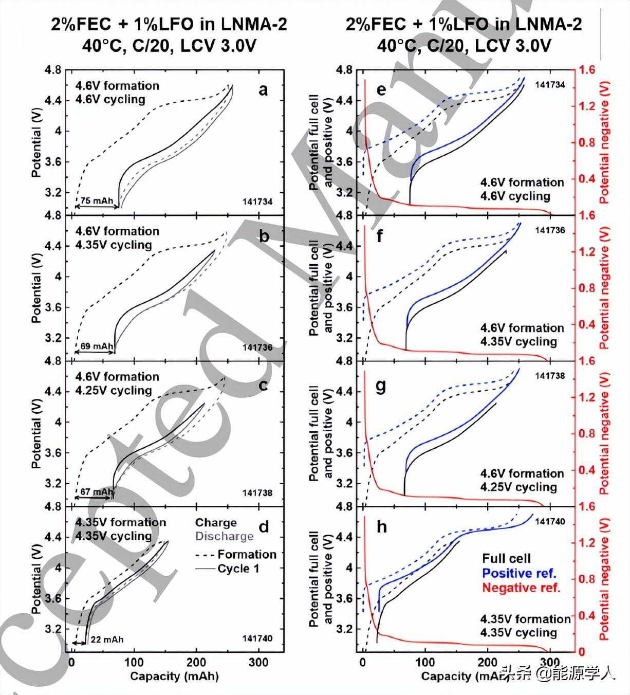 (1)LNMA正极材料活化可以持续长达200次循环,具体取决于所选的截止电压;