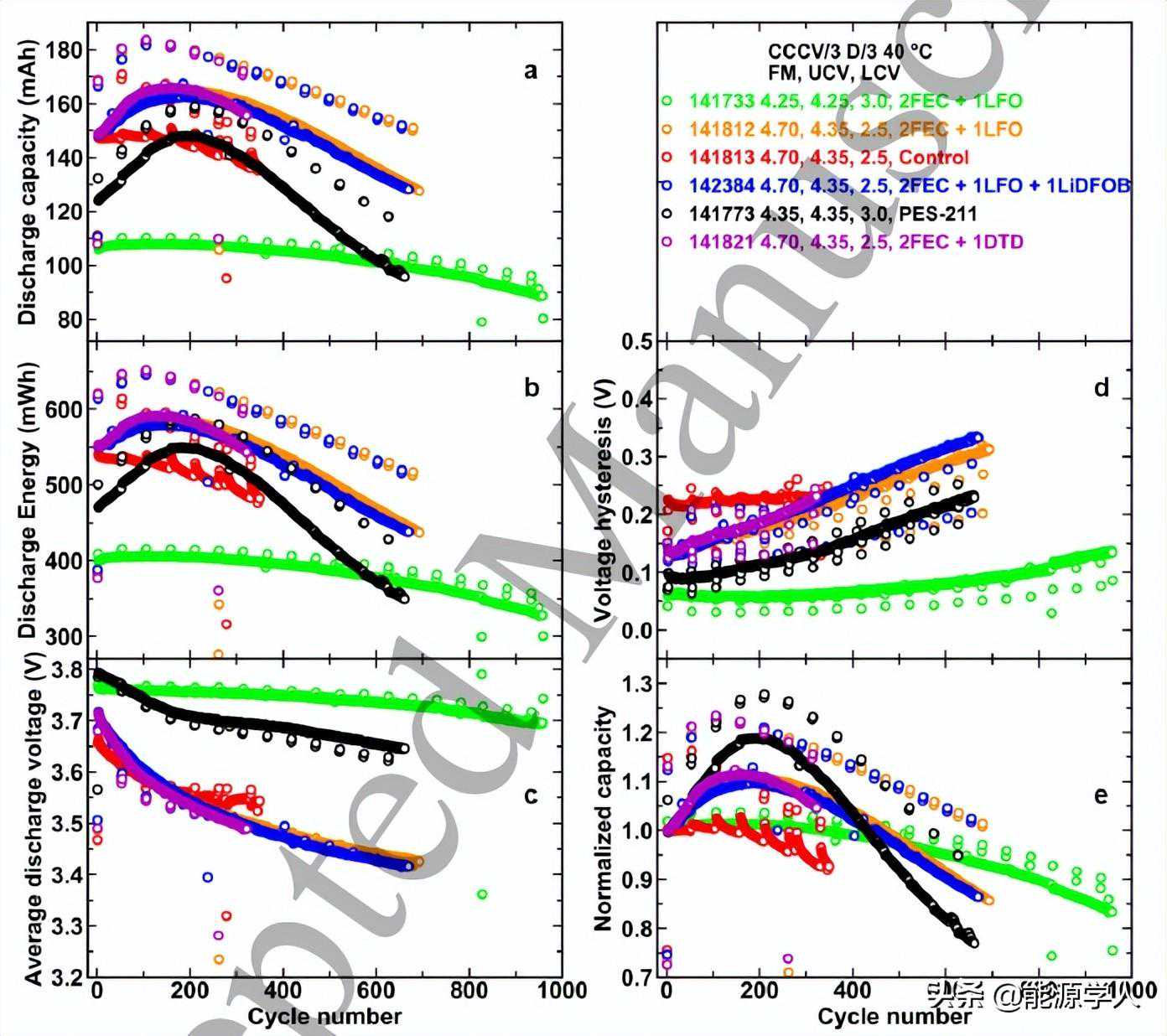 1.含有各种添加剂的LNMA-1电池的长期循环结果
