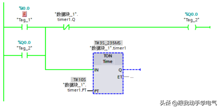 (3)只有在定时器功能框的Q点或ET连接变量,或者在程序中使用背景DB(或IEC_TIMER类型的变量)中的Q点或者ET,定时器才会开始计时,并且更新定时时间。参见下图