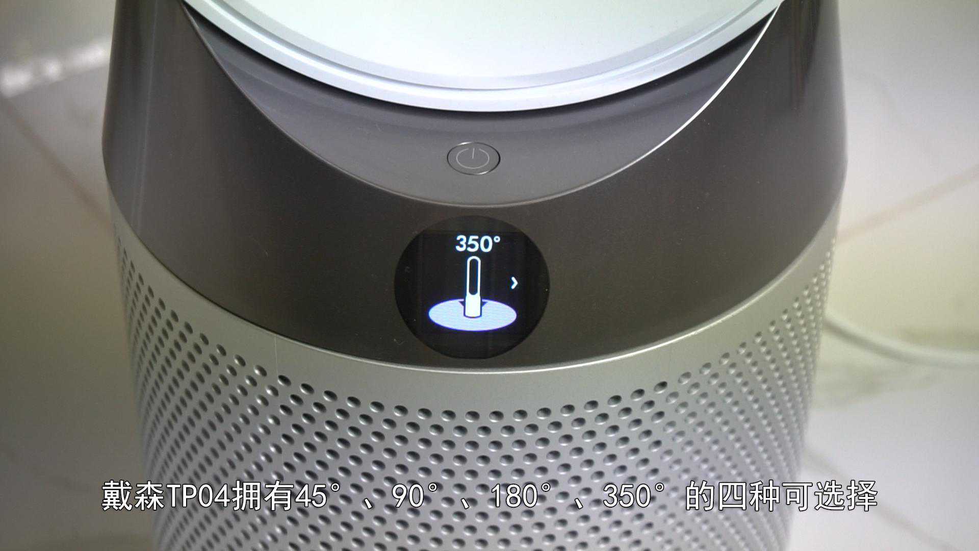 旋转角度上,戴森TP04拥有45°、90°、180°、350°的四种可选择,这一点要远远超过普通风扇小于180°的旋转角度,基本上选用350°室内的所有角落都能够覆盖到。