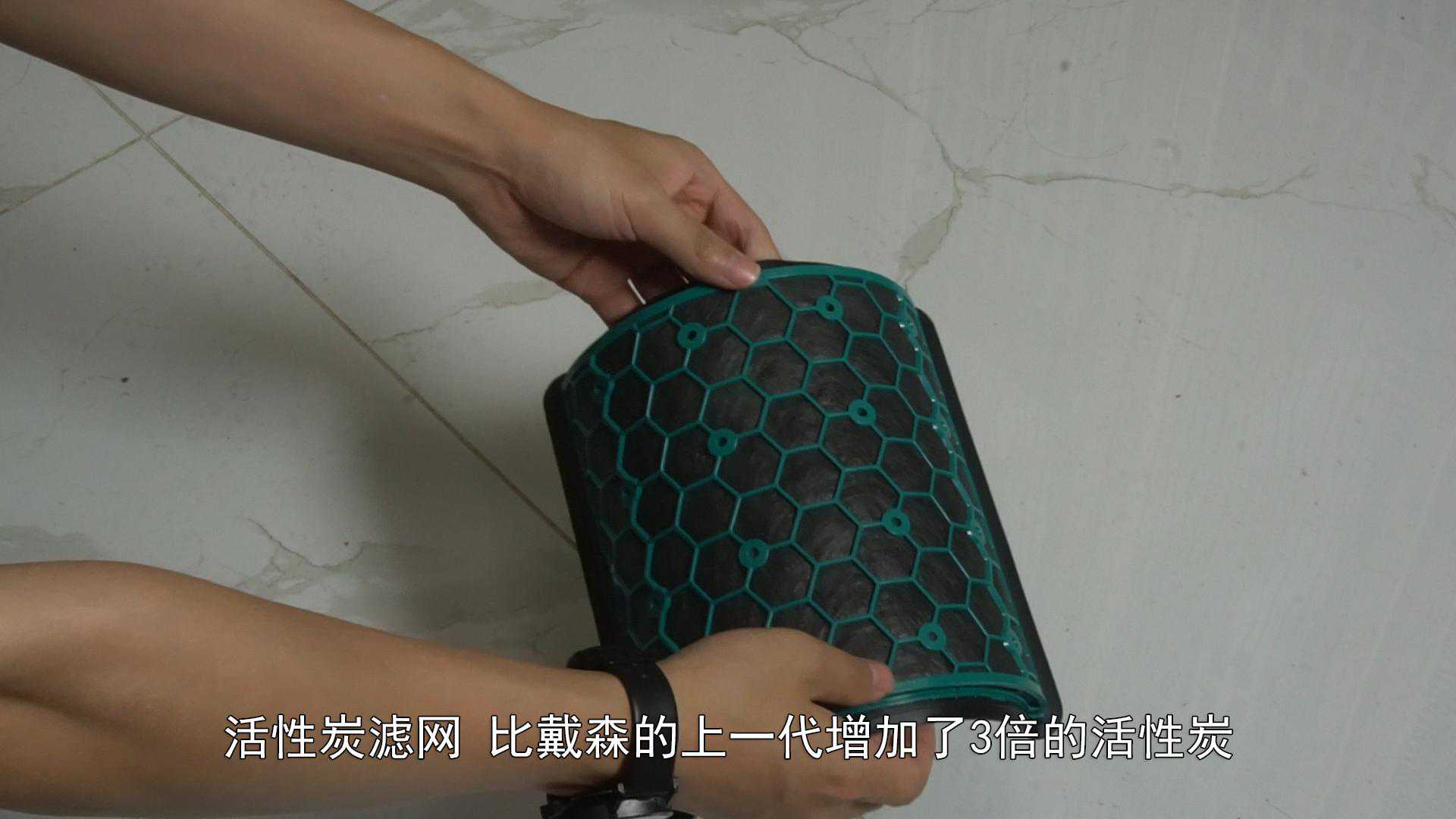 活性炭滤网比戴森的上一代增加了3倍的活性炭,主要用于净化甲醛、笨、二氧化氮等,包括二手烟之类有害气体。