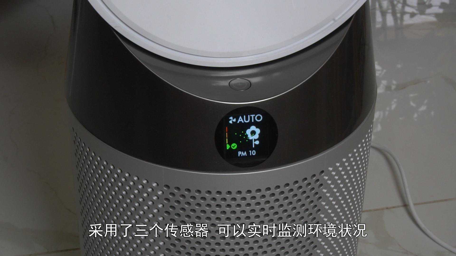 戴森TP04还配备了全新的LED显示屏,采用了三个传感器,可以实时监测环境状况,包括、PM10、挥发性有机物、二氧化氮、温度、湿度、还有滤网使用状况等,也可以根据检测到的情况进行自动调节。