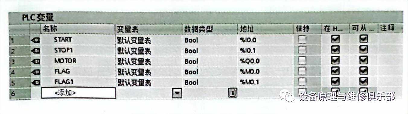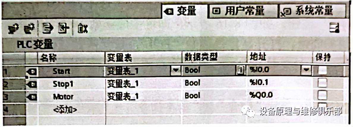 ②填写变量表。在博途项目视图的项目树中,双击打开PLC变量表,并填写变量表,如图2所示。