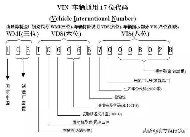 汽车车架号17位代码含义