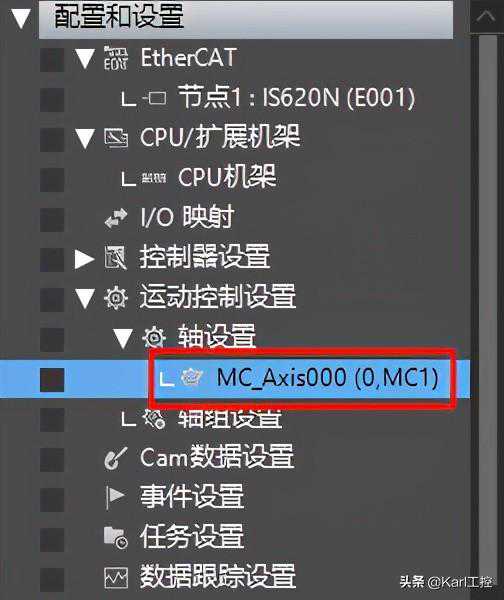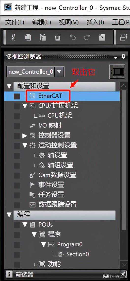 展开【配置和设置】,双击打开【EtherCAT】,如图所示