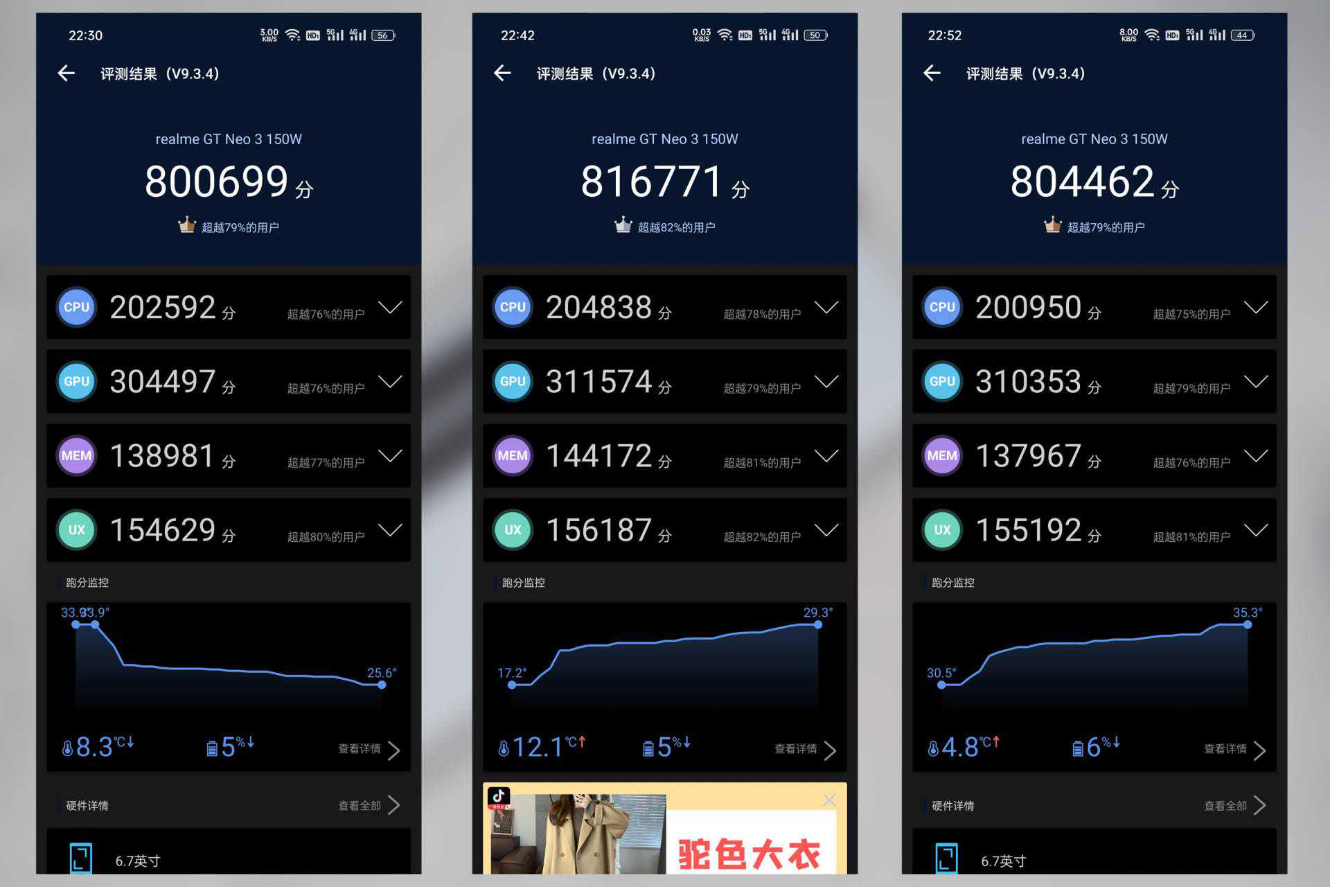 新增了独立显示芯片,配合天玑8100总体功耗是提升的,在散热能力持平真我GTNeo2的情况下,真我GTNeo3的散热能力其实也有提升,只不过两台机器直接对比,消费者可能感知不出变化。