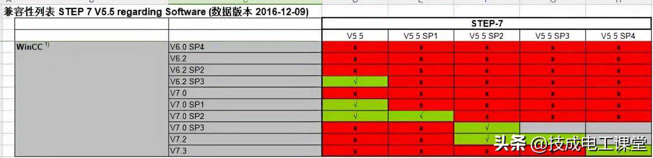 上图中红色×表示不兼容或者没经过西门子工程师的测试,绿色√表示兼容。