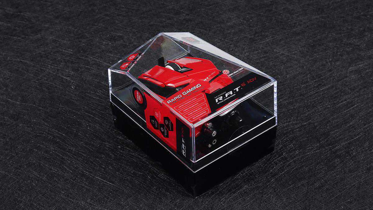MadCatz(美加狮)RAT8+ADV游戏鼠标采用了多边形的亚克力包装上盖,颇有一点展示橱窗的感觉在里面。更方便用户直观的看到鼠标造型,也能为鼠标提供更好的保护作用,日后的收纳展示也更加方便。包装上的贴纸则是提供了鼠标的关键性参数与特点标识。