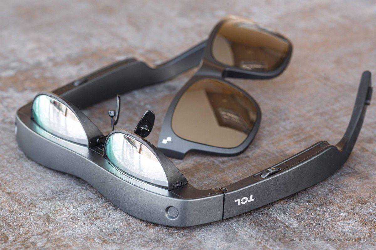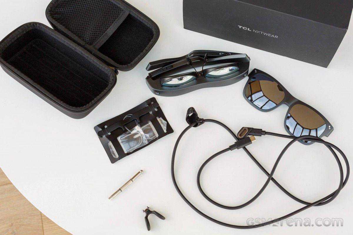 让我们从399美元购买的实际硬件开始。NXTWEARS眼镜装在一个漂亮的两件式盒子里。除了主要单位本身和其专有的磁性电缆,你还可以得到一个磁性单元对遮阳篷附加在单位的前面。这些可以在一定程度上帮助沉浸,因为他们让更少的光通过,虽然你仍然可以看到通过他们完全罚款。根据TCL的市场推广,还有另外两种可以单独购买的折叠式遮阳伞,尽管我们个人在任何地方都找不到它们。