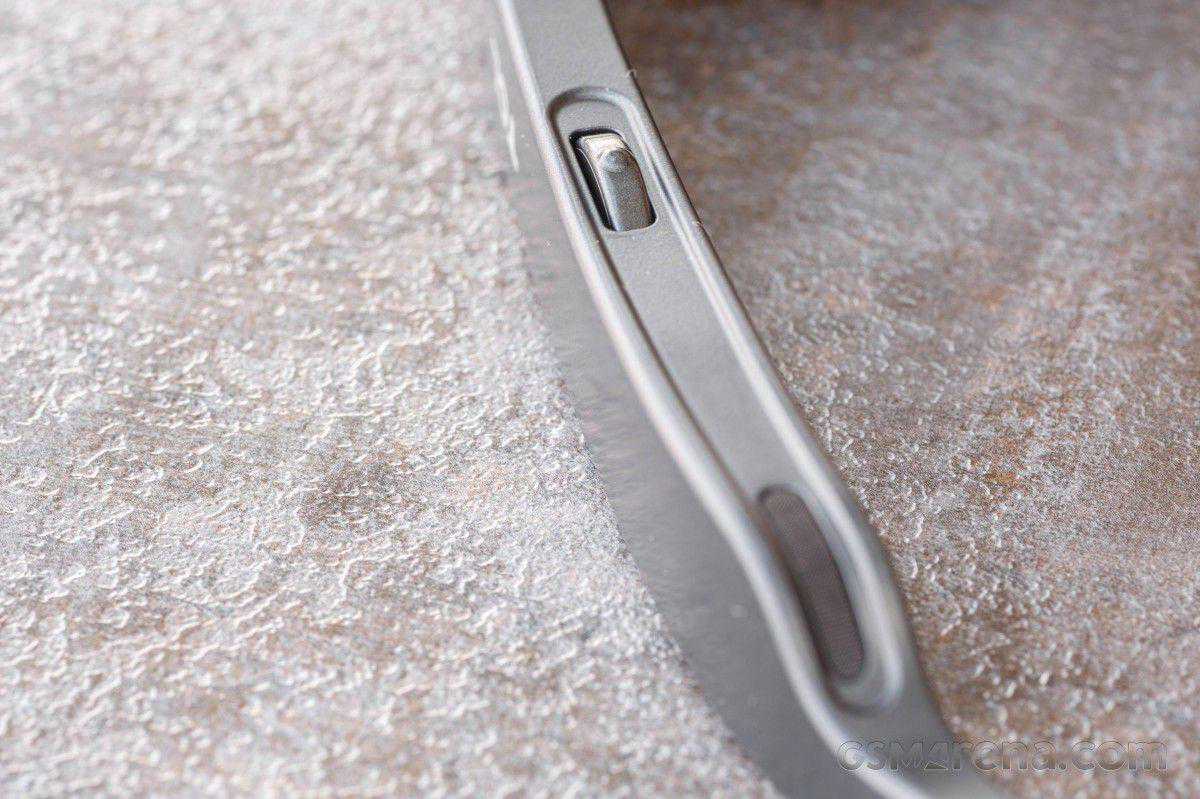 它的两侧有一对凹槽,看起来像摄像头孔或某种传感器。目前为止,我们可以告诉,这些只是在那里,以协助持有可选的管理单元遮阳篷的磁铁,并作为指导孔的连接过程。他们似乎做他们的工作就很好,因为遮光罩去容易,不脱落自己在正常使用。