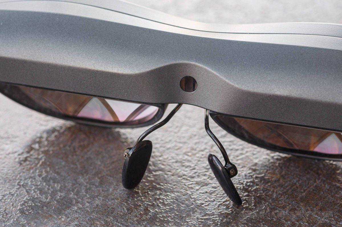 NXTWEARS眼镜有一个很酷的额外功能:磨损传感器。它被放置在眼镜的中央,就在鼻垫的上方,看起来是一个简单的基于距离的单位。它工作得非常好,在你摘下眼镜几秒钟后就会关掉,一旦你重新戴上眼镜,它几乎立刻就会重新打开。