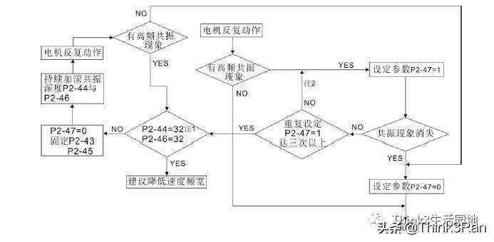 2.当共振现象持续存在,并重复设定P2-47=1达三次以上,请进入手动调整共振深度
