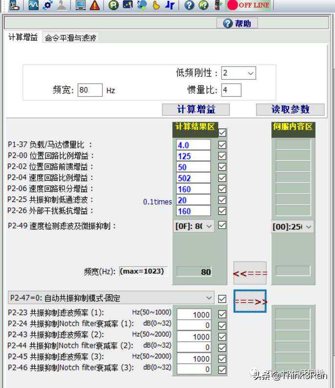 持续估测系统惯量,每隔30分钟会自动存储所估测的负载惯量比到P1-37,并参考P2-31的刚性以及频宽。