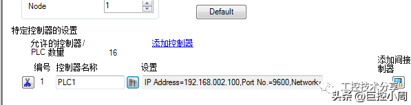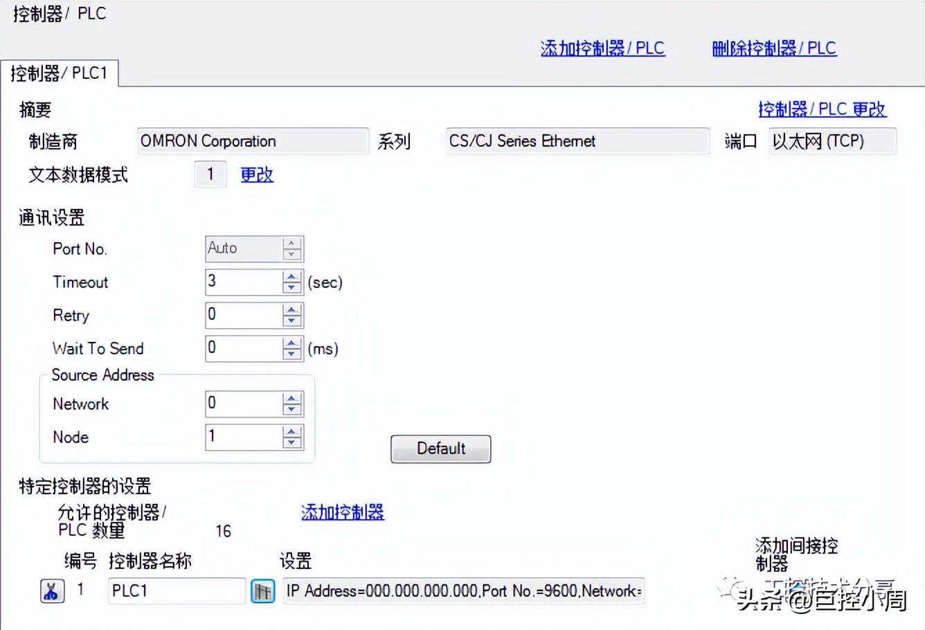 在控制器/PLC1选择通讯方式为以太网TCP如上图