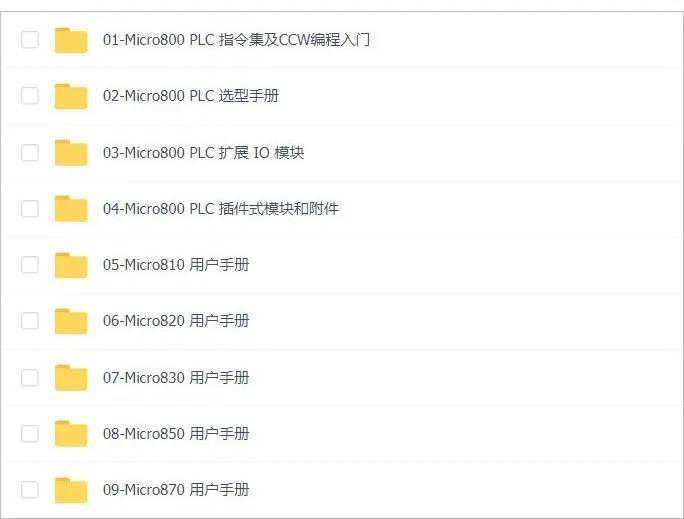 2.分享的资料:指令集、CCW编程入门、选型手册、用户手册等.