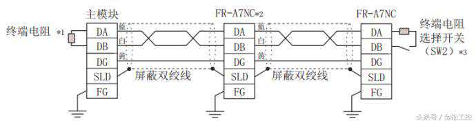 2)QJ61BT11N自带终端电阻,FR-A7NC上面SW1,SW2拨码开关选择终端电阻