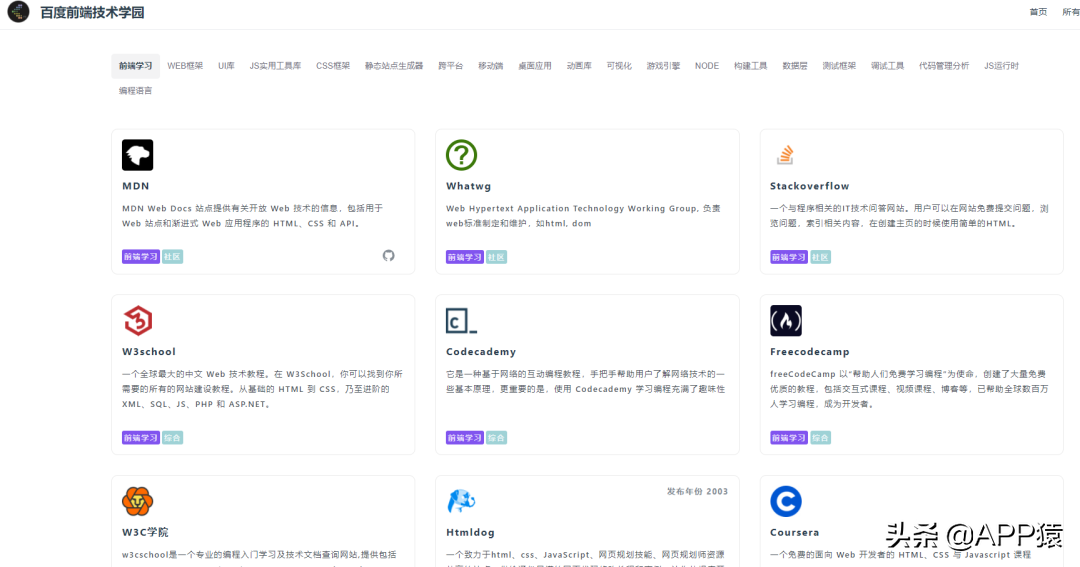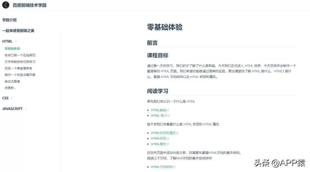 【百度前端技术学园】是百度出品的一个专业前端学习站点,完全免费,内容涉及各种前端知识包括HTML、CSS、JAVASCRIPT等,除了语法学习还有各种详细的案例,题目。对于正在学习前端开发知识的用户值得收藏。