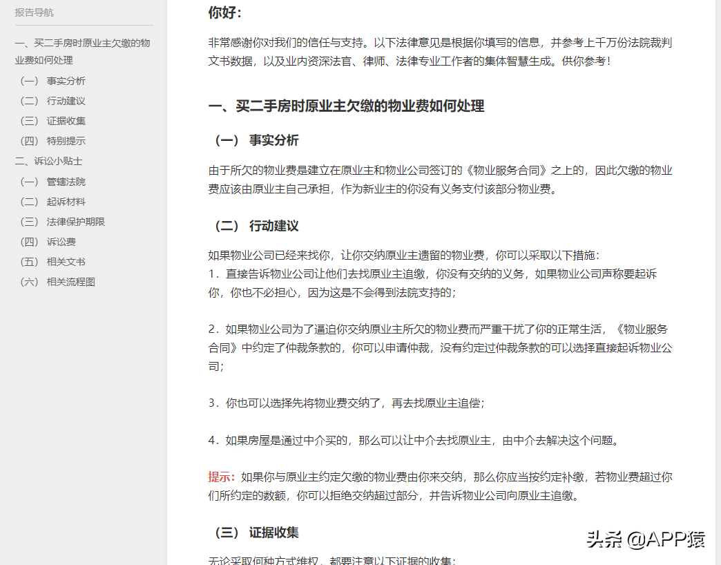 【智能法律咨询】是我国司法部上线的一套人工智能+法律的智能法律咨询系统,该系统会结合用户对案件分类选择及相关选项的选择进行智能识别,并出具法律意见书并附有法条、相关司法解释和类似判例。这个网站强烈建议收藏,生活中遇到一些纠纷或者法律问题的时候,可以通过这个系统先进行查询,看看有没有对应相关案例的法律意见。各类法律问题在这个站点都整理得非常详细,解答也极为清晰。官方出品,而且还完全免费,太强了。