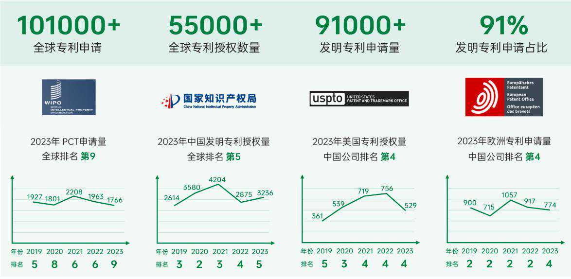 截至2024年3月31日,OPPO的全球专利申请量已超过101,000件,授权量超过55,000件,其中发明专利申请数量超过91000件,在所有专利申请中占比91%。