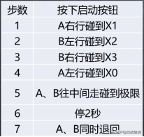 如下图,有两台电机M1、M2,分别能够控制A、B两个平台进行左移右移动作,每个平台都有左右限位,具体I/O分布如表所示: