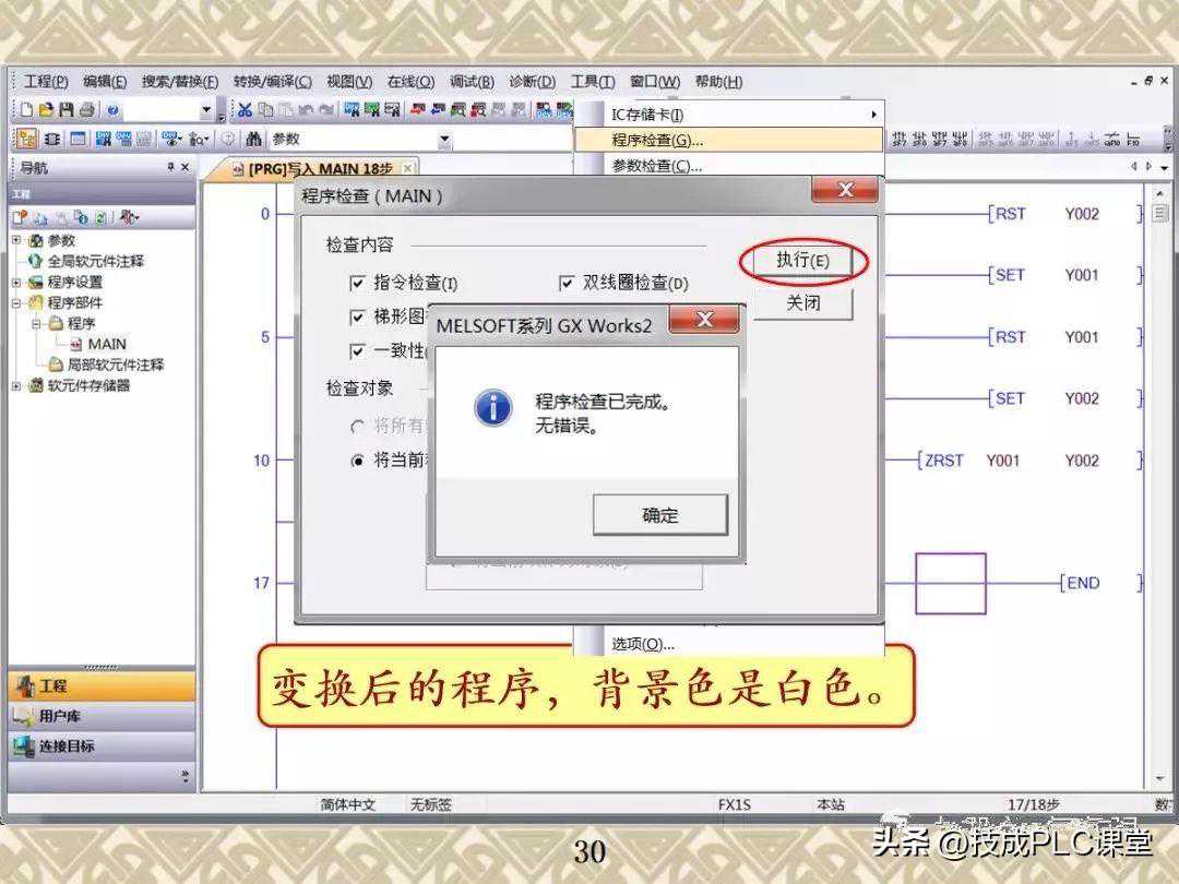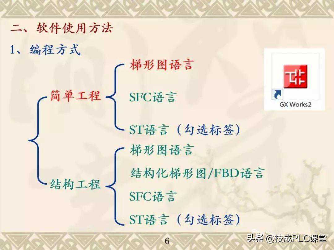 三菱PLC2011年之后推出编程软件GXWorks2,该软件有简单工程和结构工程两种编程方式。支持梯形图、指令表、SFC、ST、结构化梯形图等编程语言,集成了程序仿真软件GXSimulator2。具备程序编辑、参数设定、网络设定、监控、仿真调试、在线更改、智能功能模块设置等功能,适用于三菱Q、FX系列PLC。可实现PLC与HMI、运动控制器的数据共享。