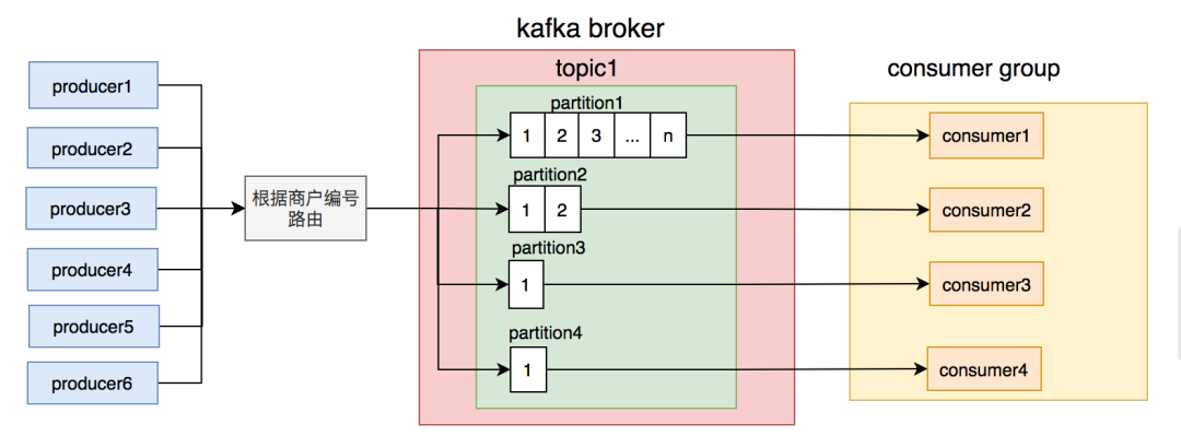 这时我们才意识到,发消息时按商户编号路由partition的规则不合理,可能会导致有些partition消息太多,消费者处理不过来,而有些partition却因为消息太少,消费者出现空闲的情况。
