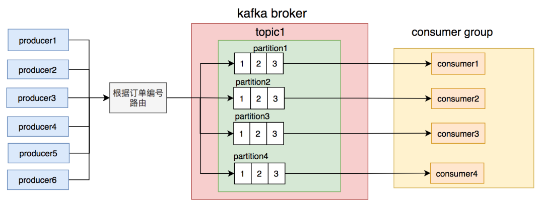调整后按订单号路由到不同的partition,同一个订单号的消息,每次到发到同一个partition。