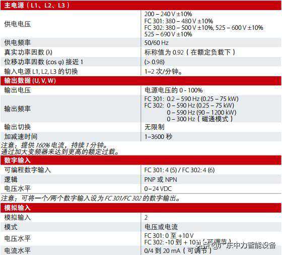 Danfoss丹佛斯变频器VLT®Automation-Drive-FC301/FC302产品规格