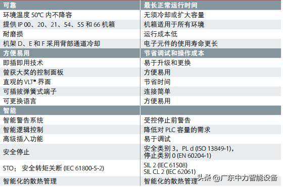 特点和优势工作温度范围非常大,从-25°C至+50°C,无需降容,当变频器处于极端环境时,也可确保可靠操作。