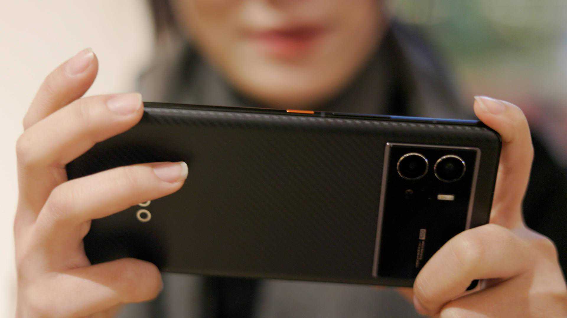 手机的背板上,iQOO的配色就真的是直男最爱了,碳纤维纹理加上亮黑的配色,整体很有跑车的质感。而且这个机身质感有一种自带散热buff的感觉,外加上这一代比上代的厚度还变薄了一点,整体的战斗感更强了。