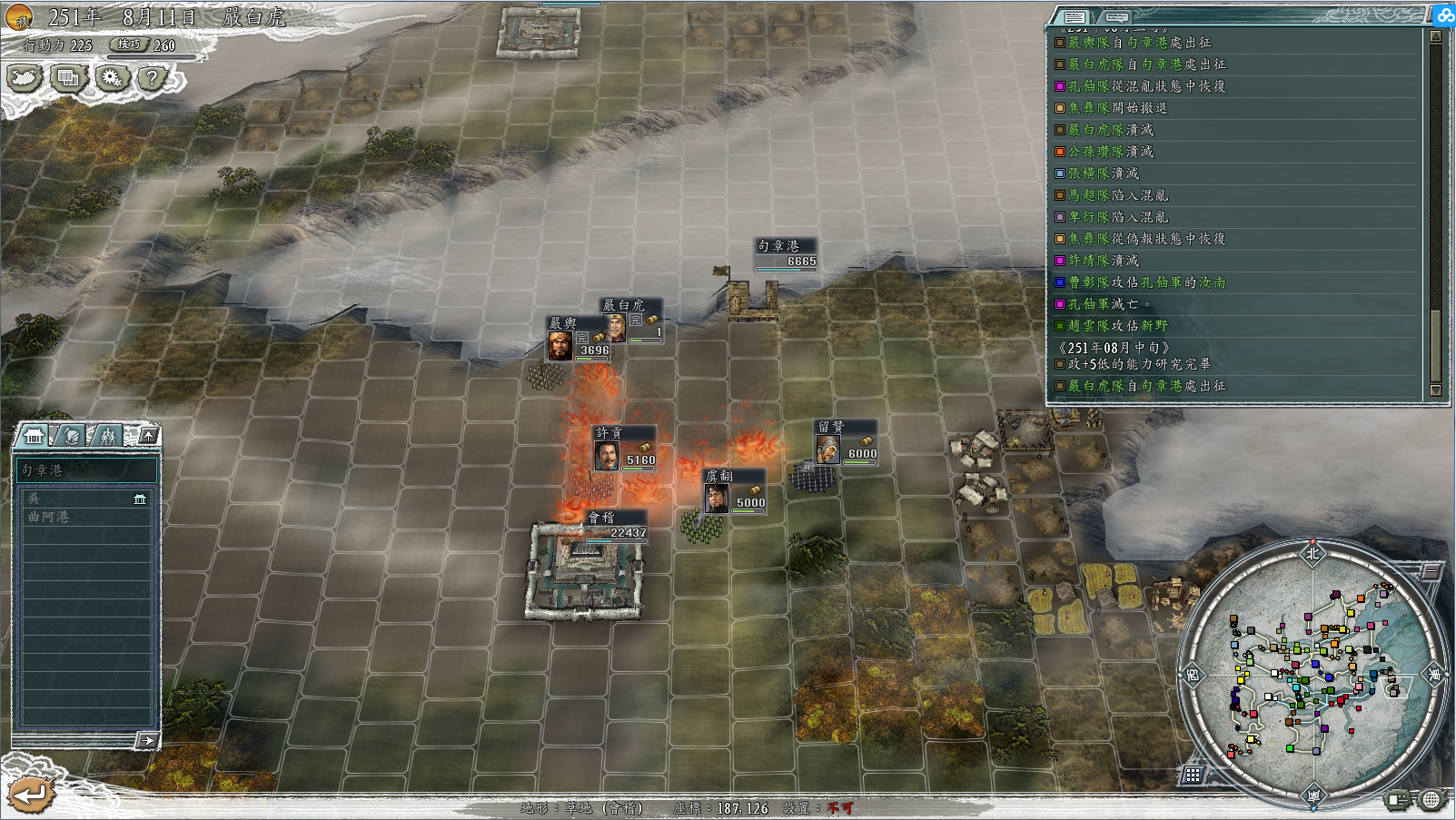 电脑AI真的很二,当你的部队接近港口位置的时候,王朗会认为已经把你击退,就会自动回城。