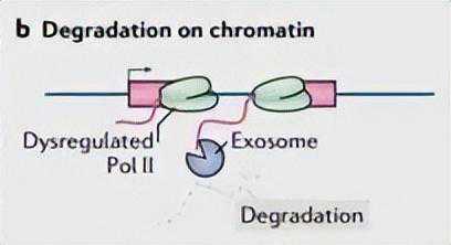 当PolII相关延伸因子SPT6的功能被取消时,染色质上可能出现某些lncRNAs的积累。SPT6的缺失导致组蛋白H3在Lys36处三甲基化(H3K36me3;活跃转录的标记)从蛋白质编码基因重新分布到lncRNA,从而增加其转录。同时,SPT6缺失会损害转录终止整合复合物向染色质的补充,导致染色质上长的非编码转录物以DNA损伤相关R-环的形式累积。