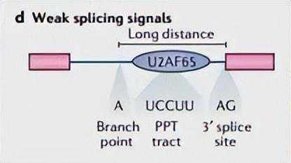 总的来说,lncRNAs的拼接效率低于mRNAs。它们的内部剪接信号较弱,3′剪接位点与分支点之间的距离较长,这与增加的核保留有关(图1d)。