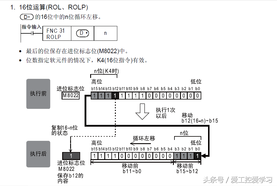 ROL指令:使不包括进位标志在内的指定位数部分的位信息左移、循环的指令。简单来说就是循环左移指令。