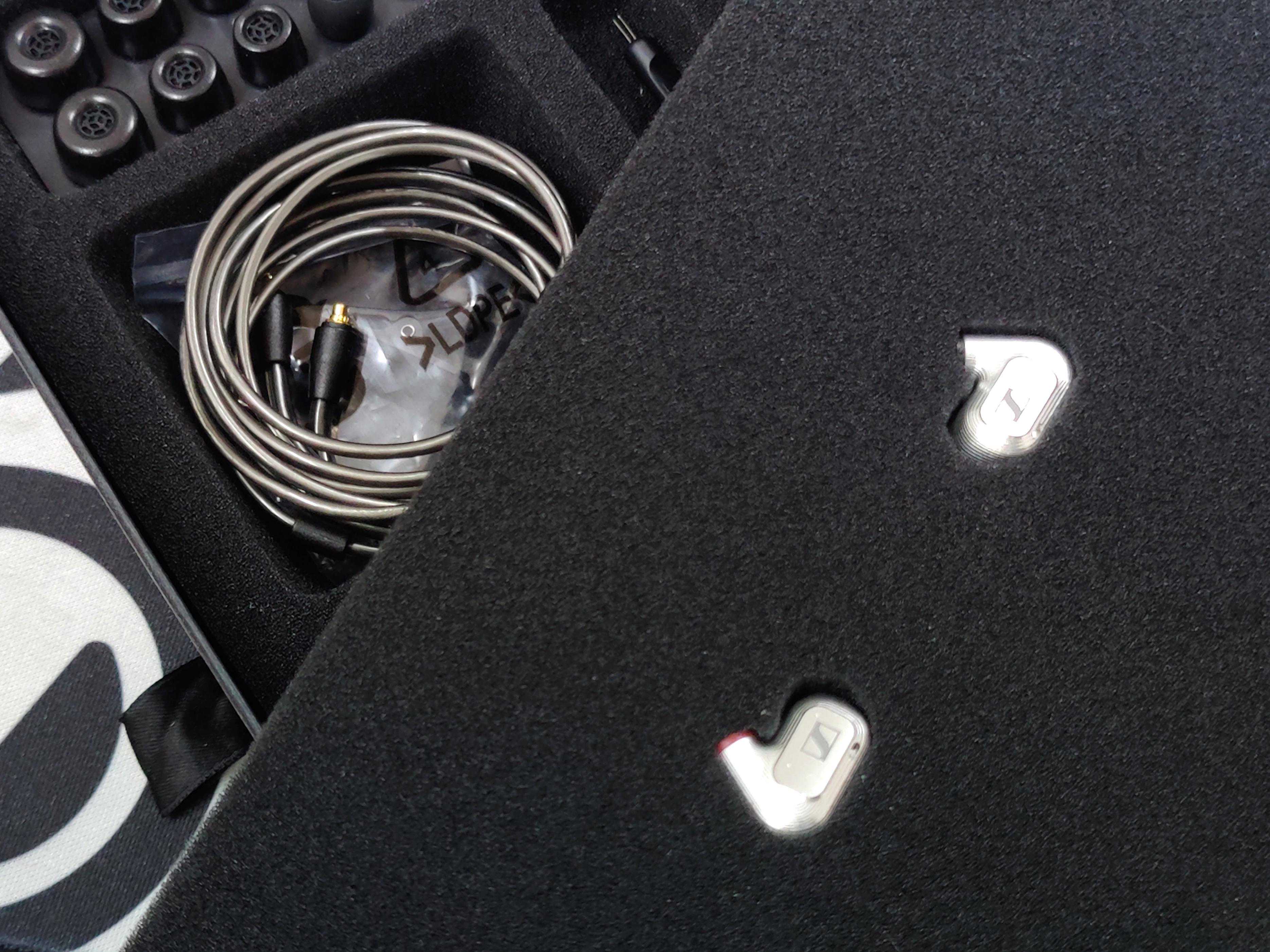 在这方面,IE600同样也做得很棒,超抗弯曲性的ZR01非晶态金属外壳德国3D打印,手感近似稀有金属般的磨砂光泽和纹理。作为两款都是动圈耳塞的泄气孔的位置都巧妙地设置在不算太显眼的耳机正面logo上方,左右声道的mmcx插孔都是用红黑不同颜色的保护圈加以区分,顺带提一句:尽管森海的mmcx插孔设计为了使用更加坚固而比普通的稍微凹陷些,我不敢保证是否所有的mmcx可更换升级线都能是否完全配套插入,但是至少我手头的所有的带有mmcx插针的升级线都能使用,其中包括:ddHiFiAirNyx纯银4.4平衡屏蔽升级线和effectaudioErosS爱神带有可更换ConX的mmcx插头的4.4平衡升级线。