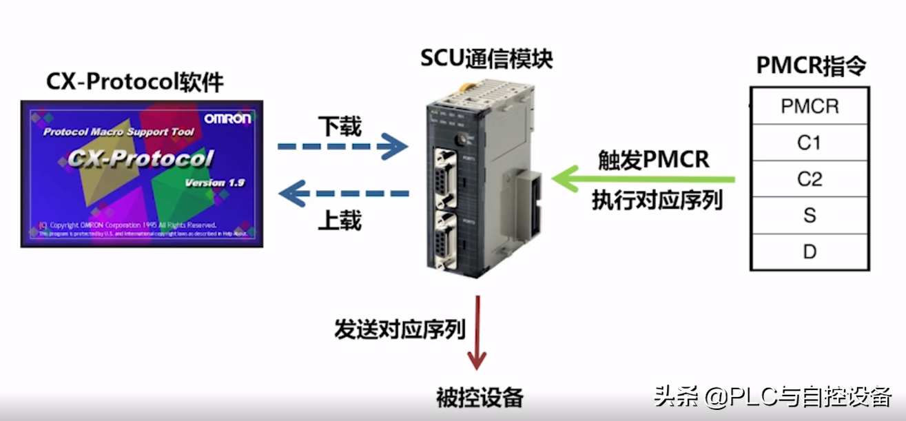 协议宏通信要用到欧姆龙CX-One软件包中的CX-Protocol软件和支持协议宏通信的串行通信SCU模块,用PMCR指令触发通信序列的执行。以上软件、硬件、指令是协议宏通信三要素。下面来学习一下协议宏通信的操作流程。