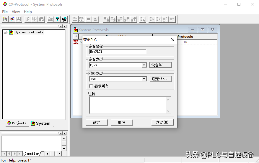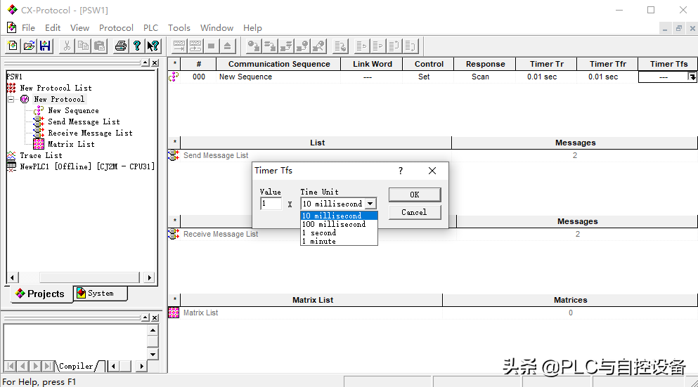 3、在Projects(项目)列表中,右击“NewProtocollist(新协议列表)”,创建一个CS/CJPLCProtocol协议。