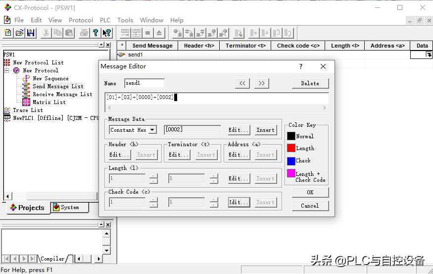 三、在CX-Protocol软件中写入发、收数据