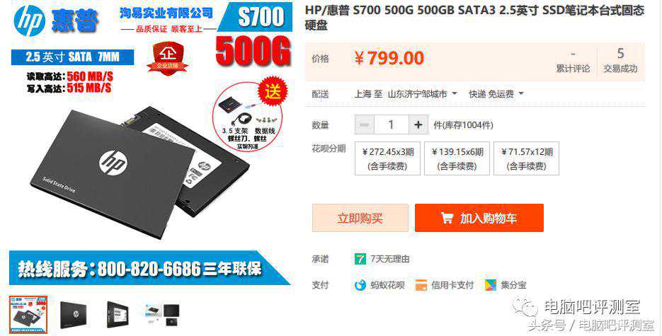 1:惠普S700500GB