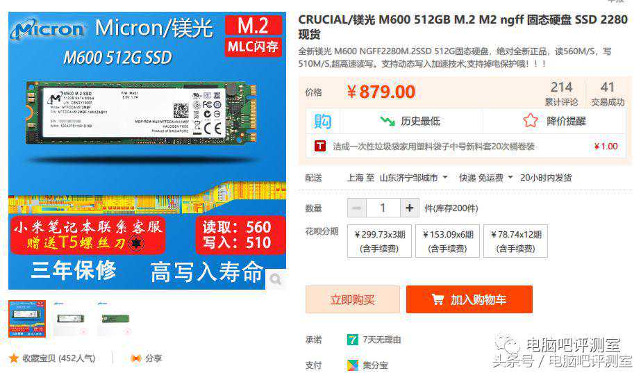 镁光业界良心!这款M600是实打实的镁光16nmMLC+Marvell9189主控,缺点是规格,会占用主板宝贵的接口,但是这不是事,你只需要多花25元去淘宝买一个转接卡即可,而且卖家一般都会给你一个金属外壳,不用担心安装问题。不过因为成本问题,这块SSD上并没有镁光一贯坚持的掉电保护。