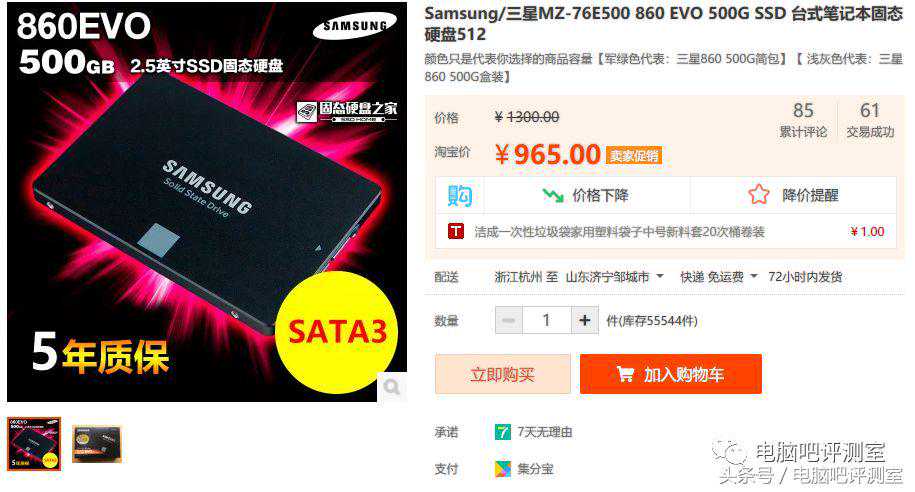 3:三星860EVO500G