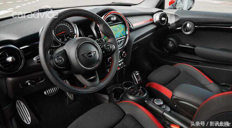 进入车内,红色与黑色相间的主题与车身涂装相呼应,中控台靠近副驾一侧嵌有3D打印的“GT限量版”饰件。配置方面,新车将配备LED前大灯组和雾灯、电动折叠外后视镜、全景天窗、JCW真皮运动方向盘、18英寸JCW合金轮圈以及JCW车身套件。