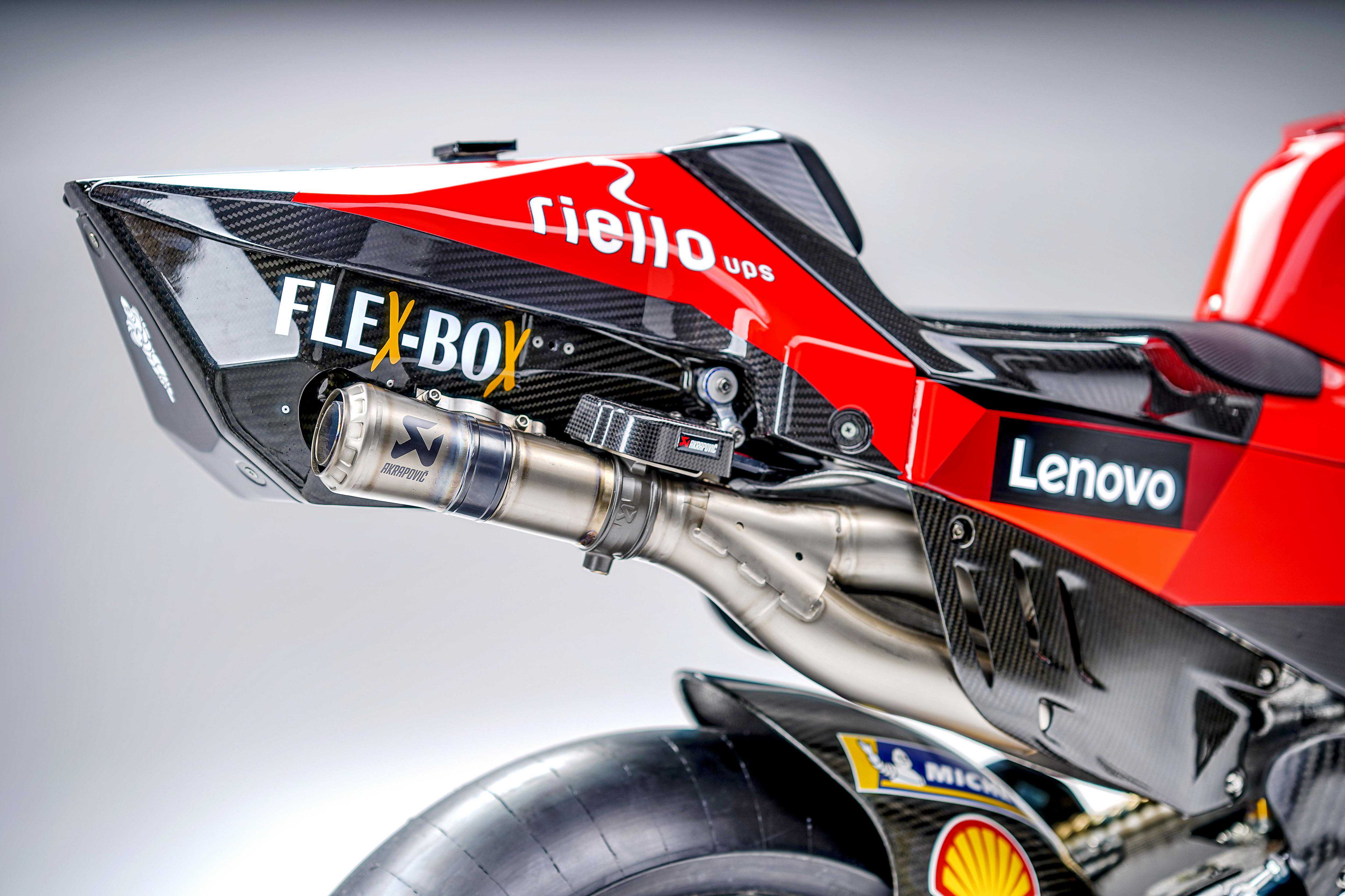 参考去年发布的赛例,今年的MotoGP工厂赛车、被禁止对发动机进行更新,只可以沿用去年的发动机。参阅杜卡迪发布的技术规格,有了一个新图案的DesmosediciGP21工厂赛车,沿用了V型90度四汽缸、DesmodromicDOHC汽动控制的每汽缸四汽阀、赛例所限定的排汽量1,000cc的发动机,最大动力输出超过250匹,干燥重量157公斤(赛例的规定是四汽缸赛车、最低干燥重量为150公斤以上)。