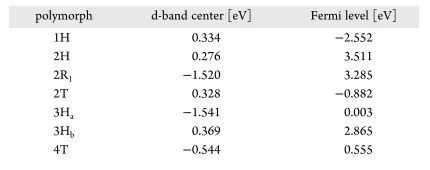 表1.稳定晶型的d带中心