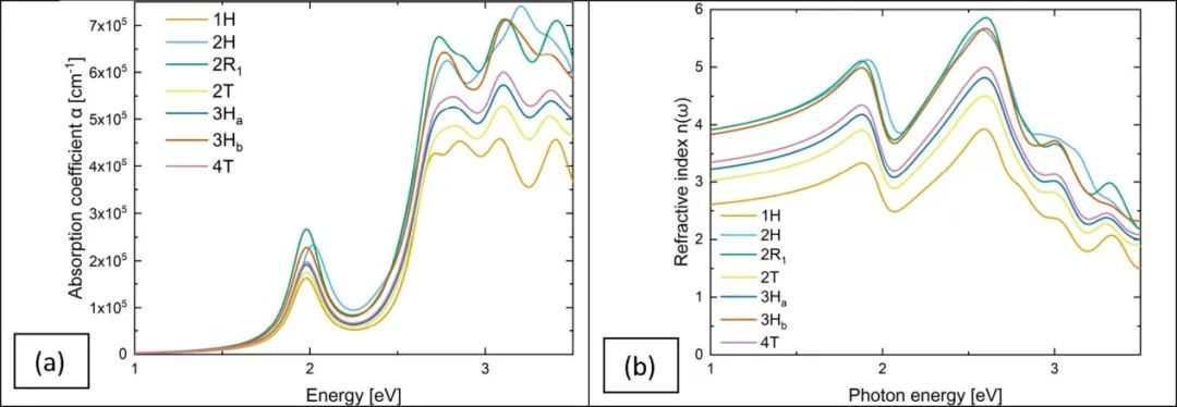 图2.计算出(a)吸收系数和(b)折射率吉布斯自由能