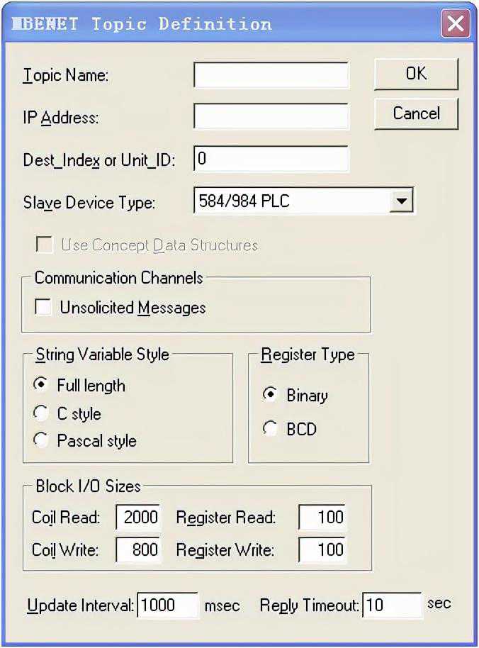 单击NEW新建一个配置,配置上料InTouch软件采数的通讯。