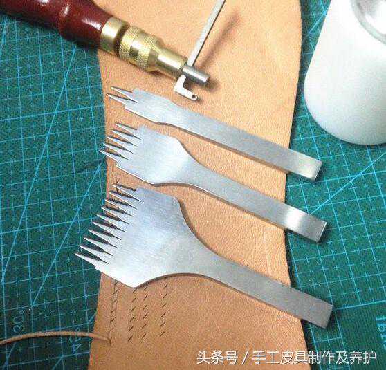 菱斩也可以使用在软皮料上,不过打出的线孔会变大,如果选择小一些的菱斩来用,在软皮料上也可以做出比较理想的缝线效果。
