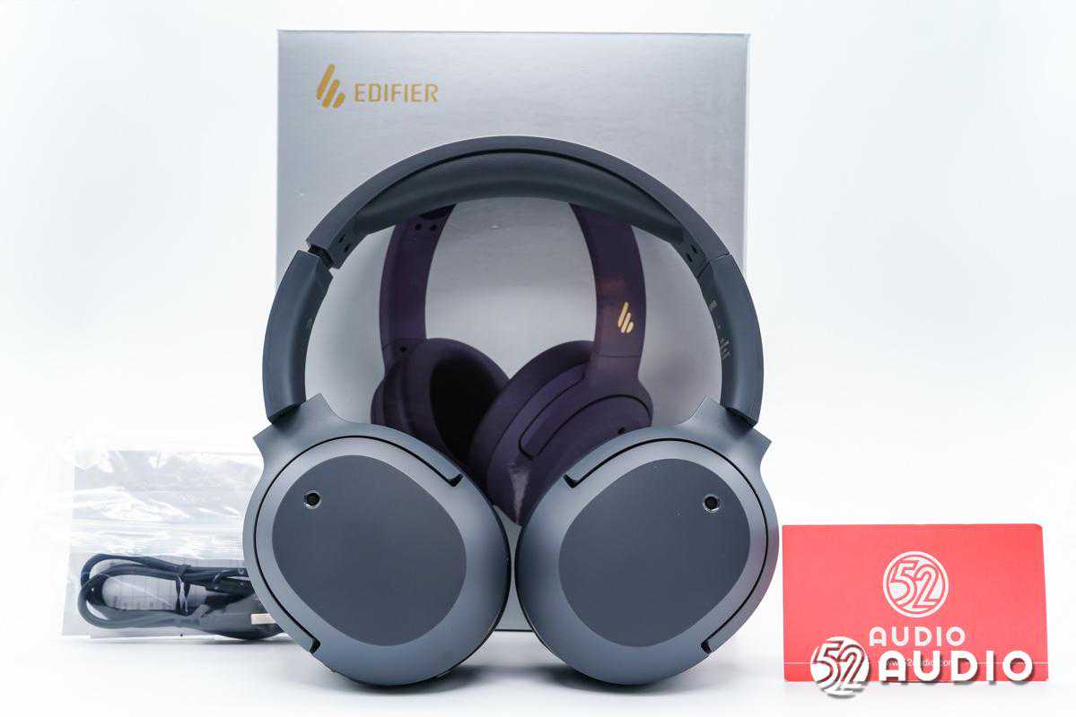 漫步者W820NB头戴式耳机包装盒采用了银灰色配色,正面展示有耳机外观设计,“EDIFIER”品牌LOGO和产品名称,以及Hi-ResAUDIO高清音频认证。
