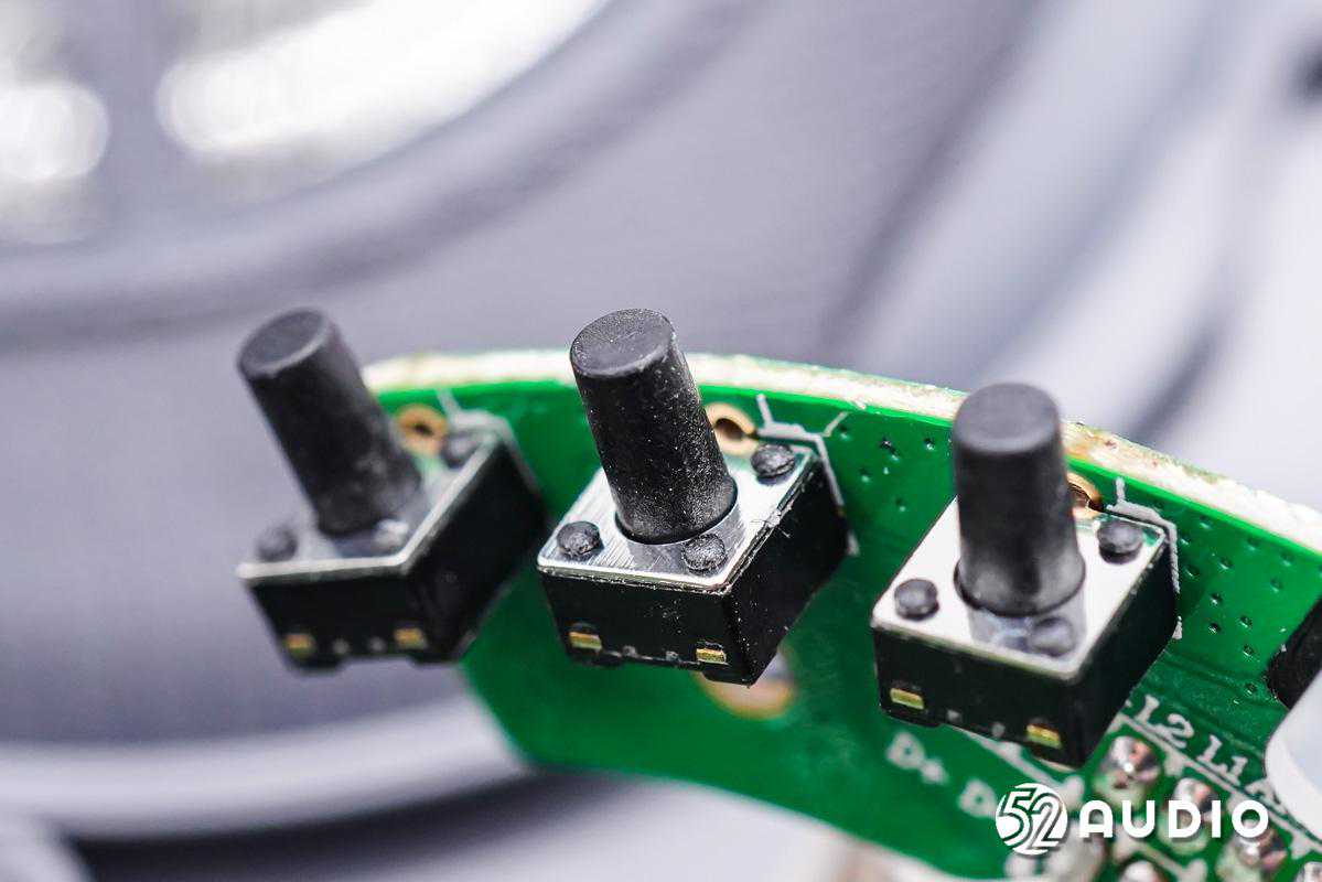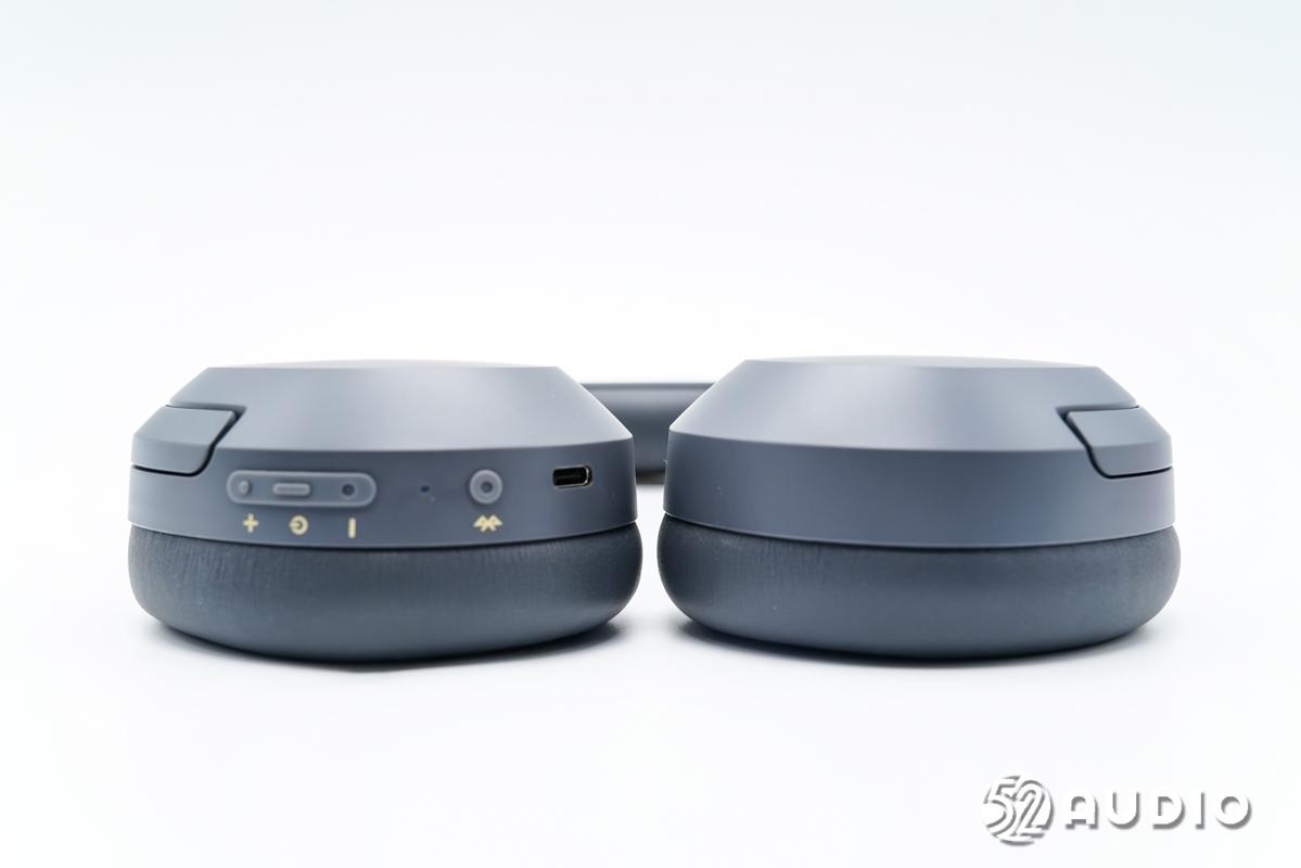 耳机底部外观一览,功能接口和按键均设置在了右侧耳壳上。
