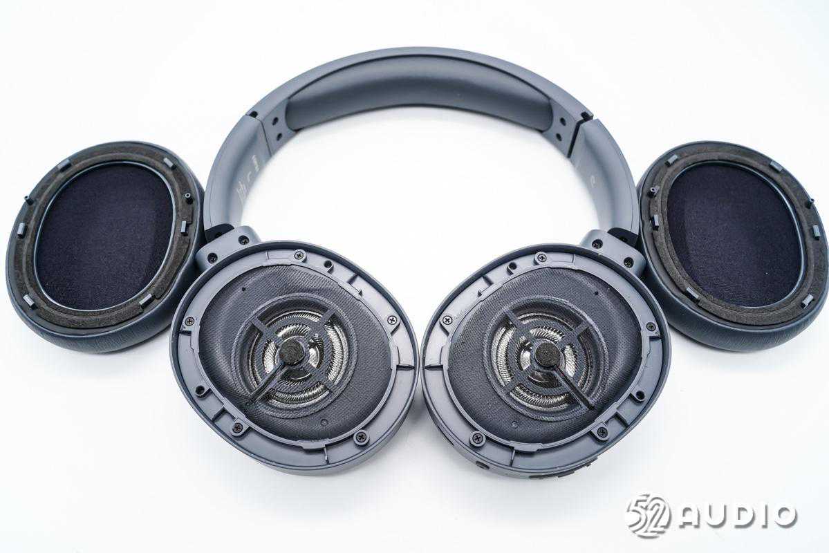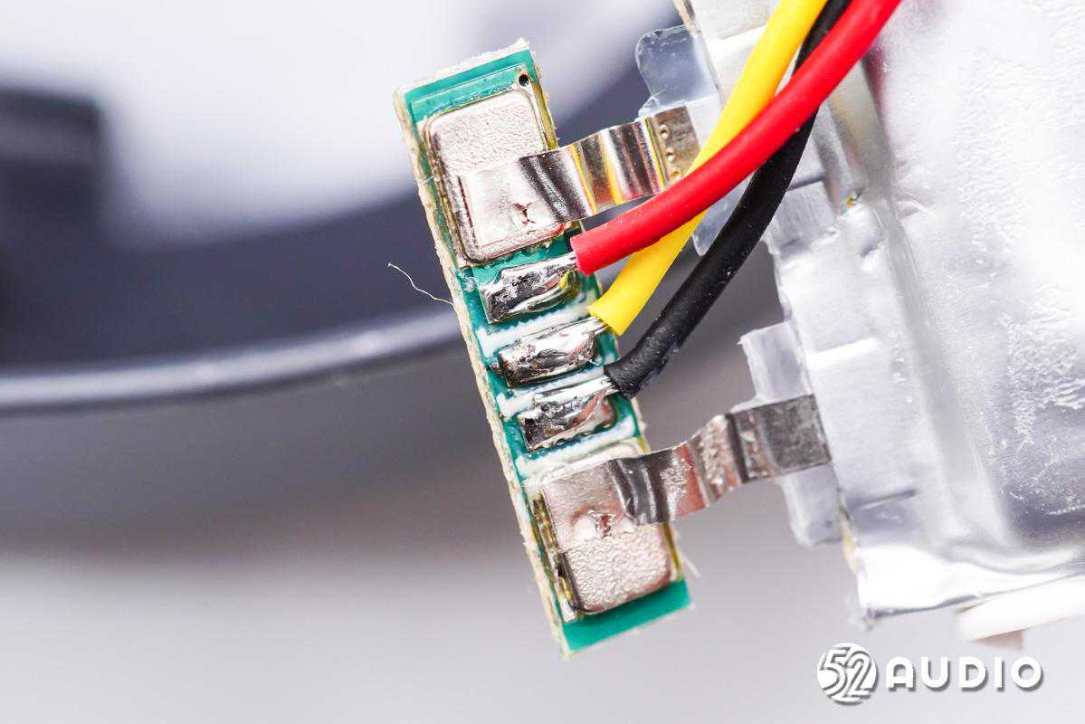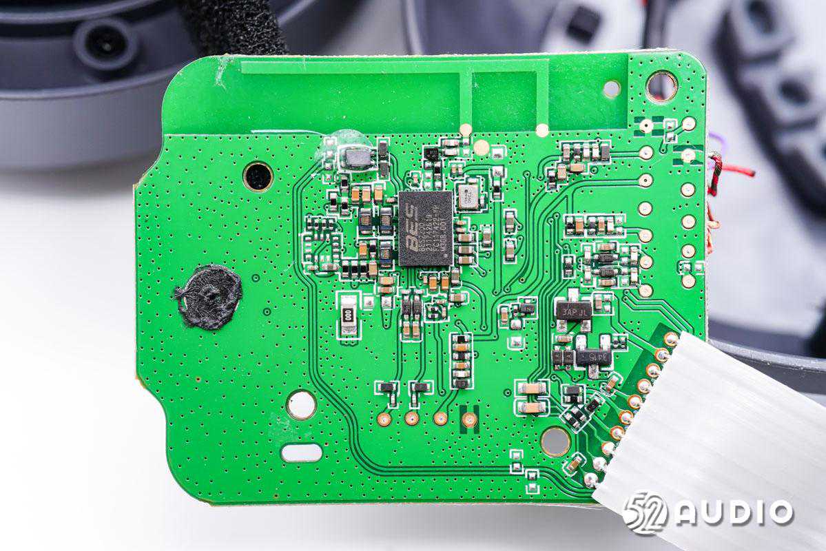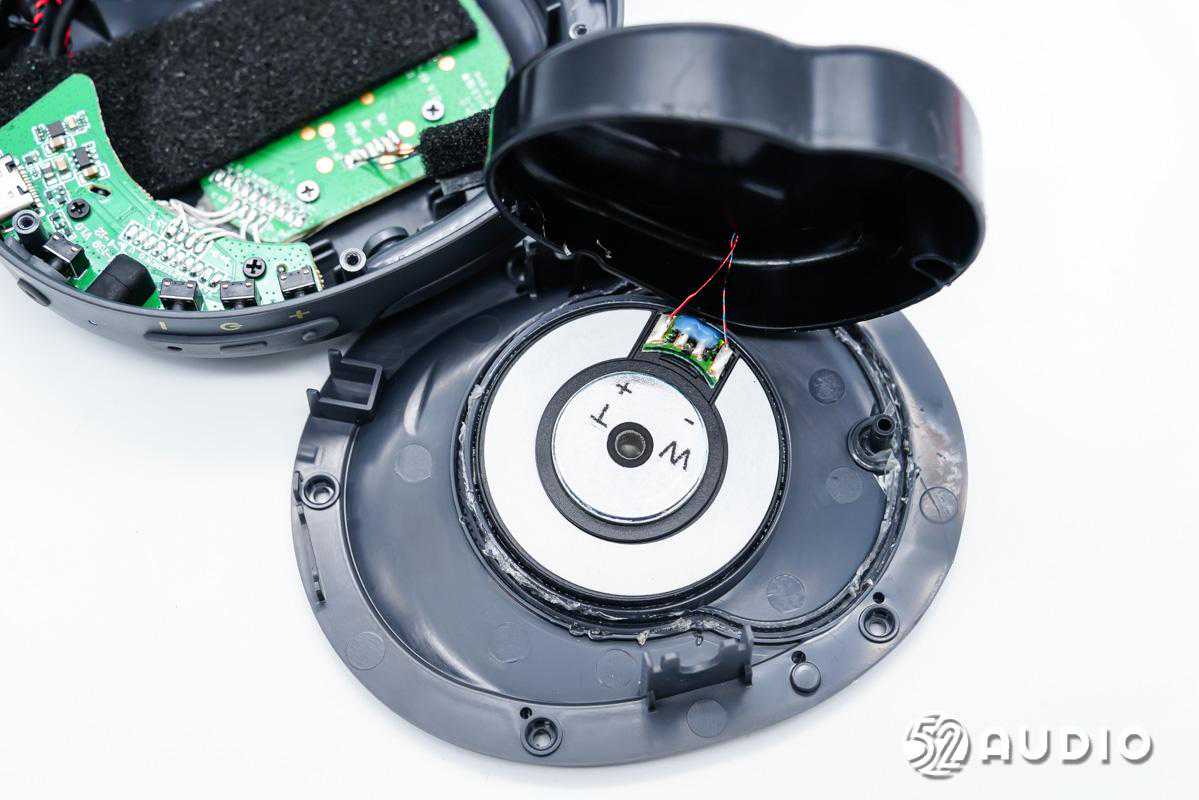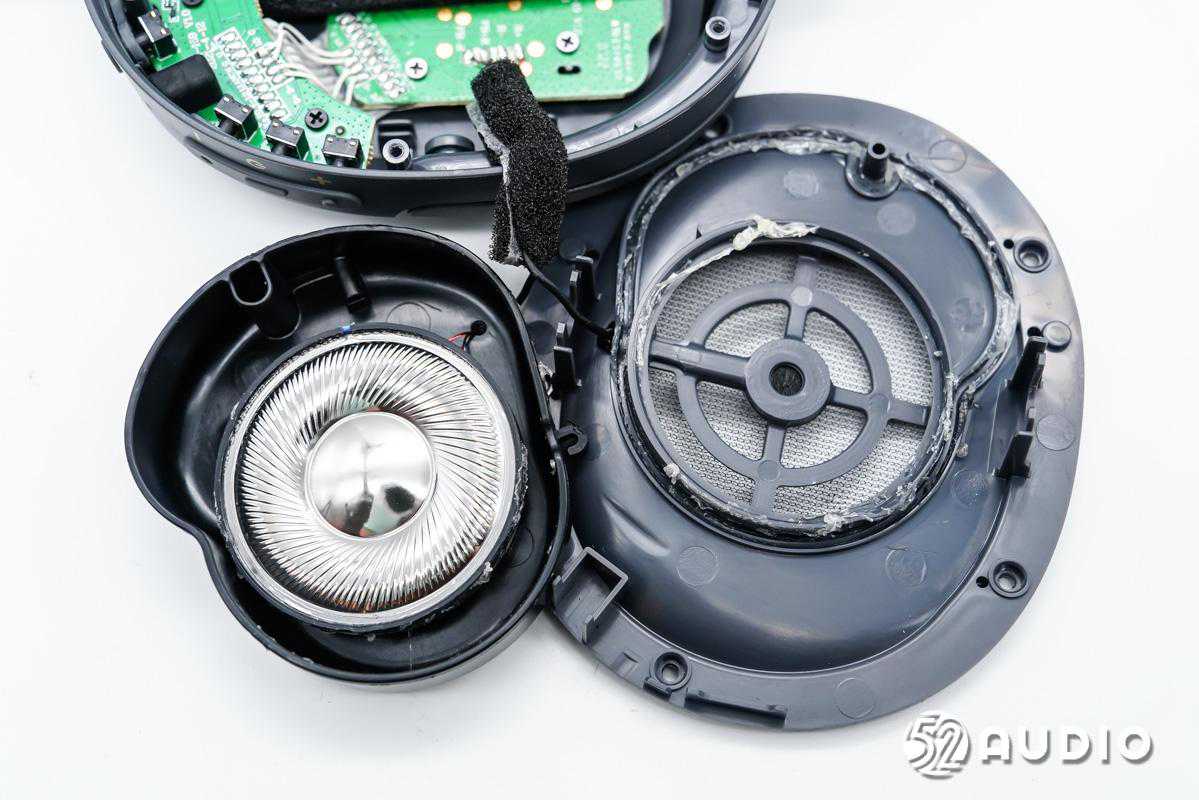 内部结构配置方面,左右耳机内均搭载了40mm镀钛复合振膜动圈单元,前馈驻极体麦克风+后馈MEMS麦克风的组合,用于混合主动降噪功能拾取环境噪音。其他方面,右耳内部设置主板和电源输入小板,以及一颗通话拾音麦克风;左耳则设置电池单元。